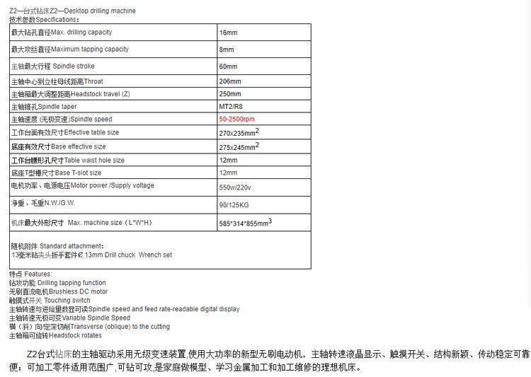 精星Z2无级调速数显钻攻两用机床 精密台式钻床